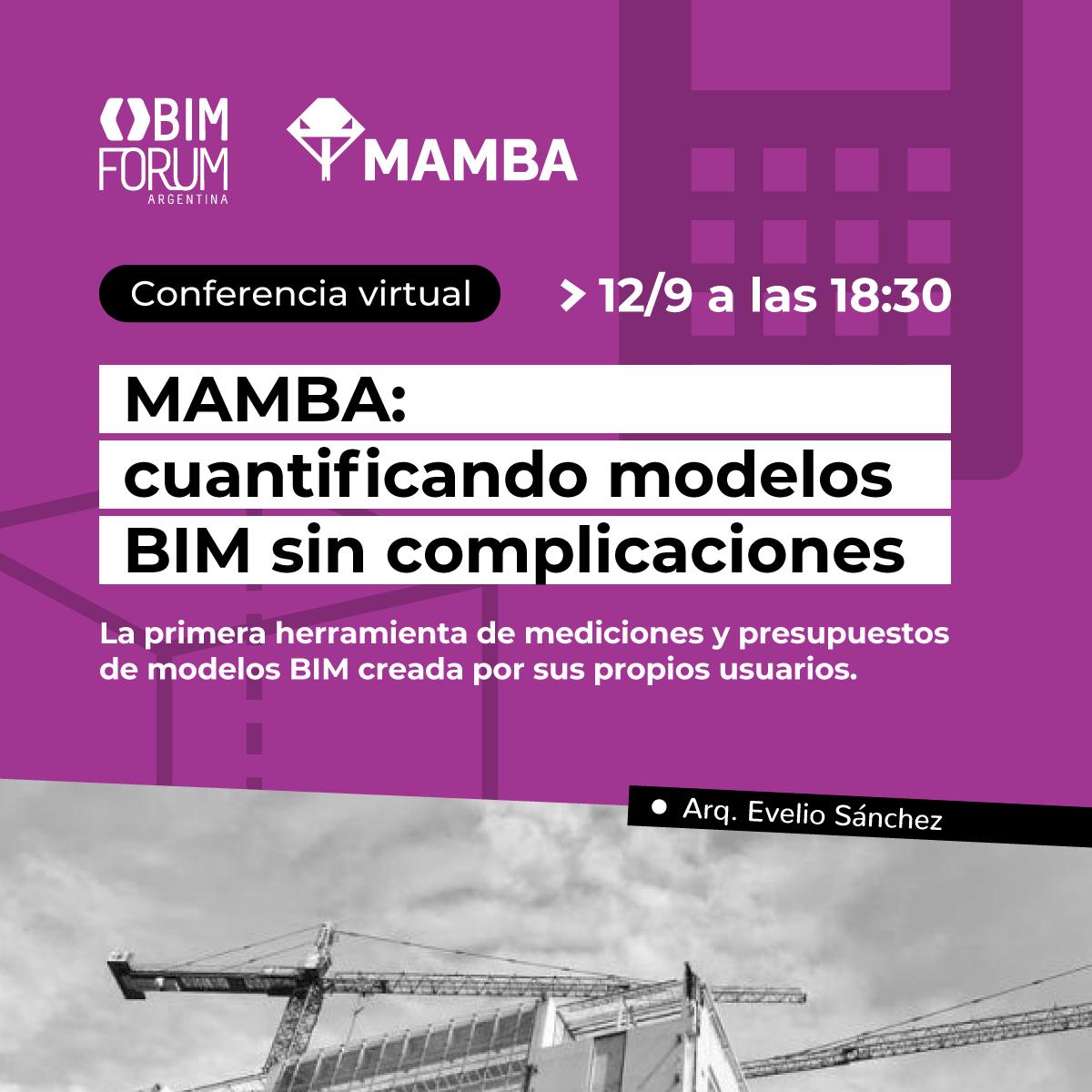 Tenemos el agrado de invitar a toda la comunidad BIM a la conferencia virtual  «MAMBA: Cuantificando modelos BIM sin complicaciones» que se dictará el martes 12/09 a las 18:30hs.