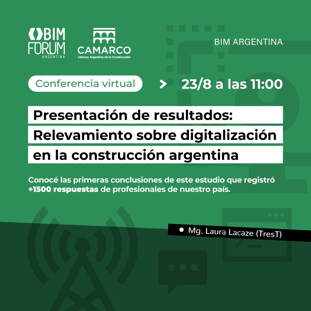 Tenemos el placer de convocar a toda la comunidad BIM y no BIM de Argentina a este encuentro de presentación de resultados y primeras conclusiones de un trabajo conjunto entre el BIM Forum Argentina, Cámara Argentina de la Construcción y +30 instituciones representativas de nuestra industria.